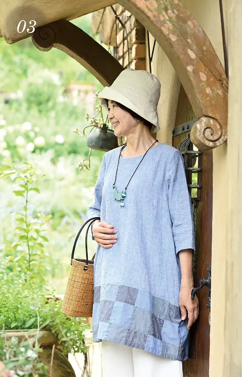 - 気になる二の腕と、腹部をすっきり見せます。肩はぴったり、ウエストはゆったりがポイント。